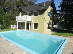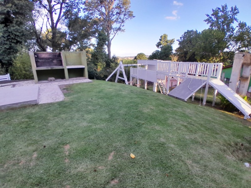 Piscina con veredas, juegos de niños en madera, parrilla y gran jardin.