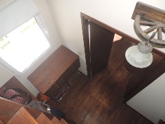 En planta baja, living comedor, cocina equipada, baño completo, tambien encontramos un espacio de guardado con estantes.