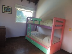 En planta alta, dos dormitorios, la habitación principal con balcón saliente.