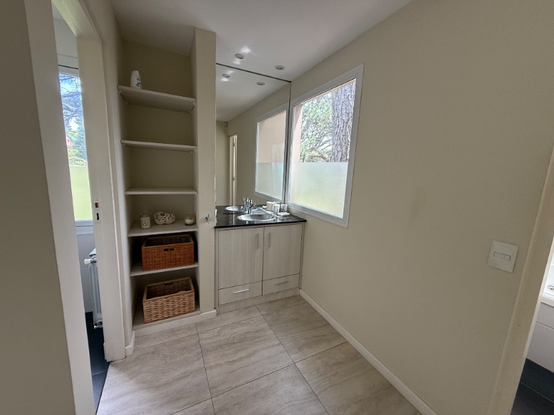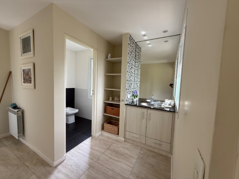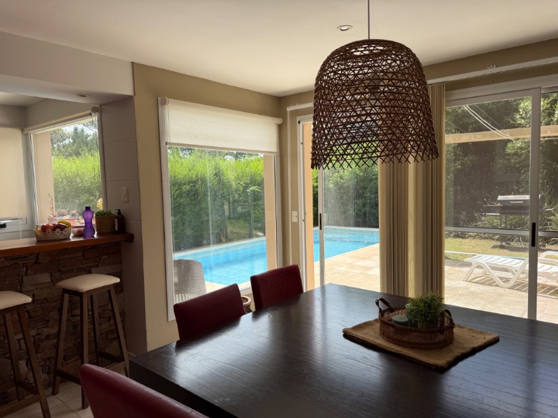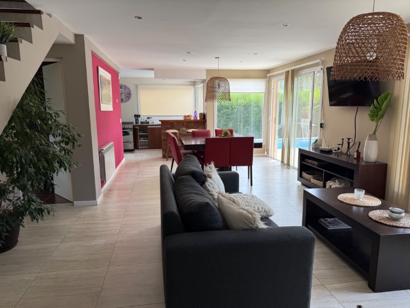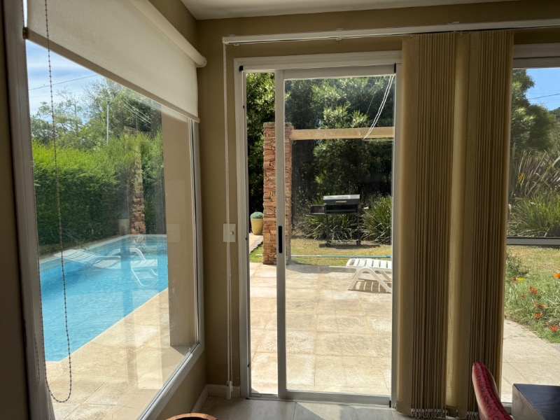 CASA MINIMALISTA EN DOS PLANTAS. EN PB.: QUINCHO - GARAGE PARA UN AUTOMOVIL, CON SALIDA A LA PARTE TRASERA DE LA CASA, ESTAR. COMEDOR, COCINA CON BARRA, BAÑO COMPLETO Y LAVADERO; TODO CON AMPLIOS VENTANALES AL PARQUE. EN PA.: 2 HABITACIONES CON COMODOS PLACARES Y BAÑO ZONIFICADO EN TRES; CON HIDROMASAJE, 2 BACHAS LAVAMANOS Y DEMAS SERVICIOS. PISCINA. CARPINTERIA DE ALUMIIO CON D.V.H., CALEFACCION POR RADIADORES. LOTE DE 600 METROS CUADRADOS, ZONA MUY PRIVADA CON VECINOS DE RESIDENCIA PERMANENTE. EXCELENTE ESTADO DE LA CASA !!!