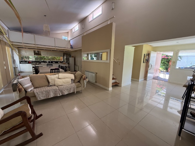 EN DOS PLANTAS, EN P.B.. ESTAR CON HOGAR, COMEDOR CON PUERTAS VENTANA AL PARQUE, COCINA CON BARRA, LAVADERO, 2 HABITACIONES, UNA AMPLIA SUITE CON VESTIDOR Y JARDÍN INTERNO, BAÑO. EN P.A: HABITACIÓN. QUINCHO – GARAGE PAR UN AUTO. IMPECABLE ESTADO, MUY BUENA CALIDAD DE CONSTRUCCION, CARPINTERIA DE ALUMINIO CON D.V.H., EQUIPOS DE AIRE ACONDICIONADO. PISCINA, SOLARIUM CON PÉRGOLA, AMPLIAS VEREDAS PERIMETRALES, LOTE DE 900 METROS CUADRADOS. EXCELENTE VISTA PANORÁMICA A CANCHA DE GOLF Y CAMPOS. SOL MAÑANA Y TARDE.- Se vende totalmente amoblado!!!!