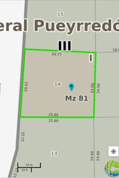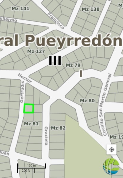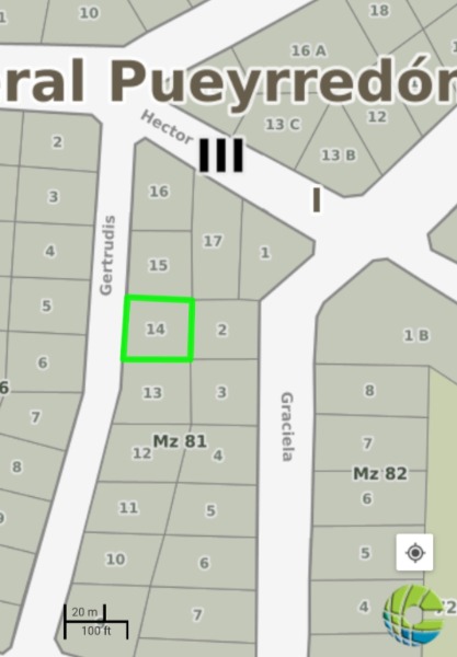 Gran lote de 607 m2. Se ubica sobre calle de asfalto. Gas natural en la vereda. Soleado. Limpio de malezas. En altura con vista. Cercano al Circuito Principal y al Golf.