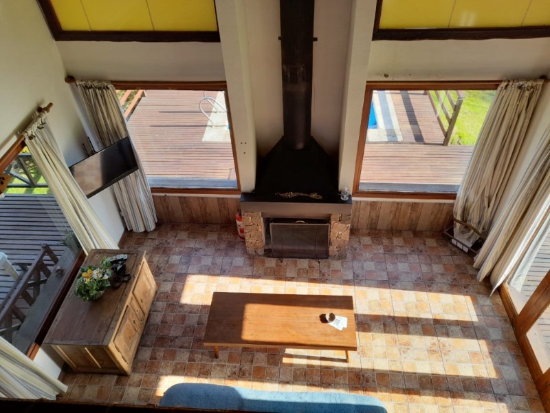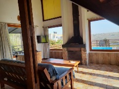 En planta baja, cuenta con un amplio living con grandes ventanales con toda la vista, con hogar a leña, comedor, cocina con barra y baño completo.