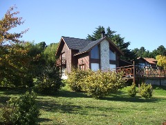Hermosa casa estilo cabaña, sobre dos lotes unificados, en inmejorable ubicación. Muy luminosa, sol todo el dia. Vista al Valle y a los atardeceres.