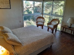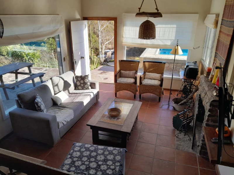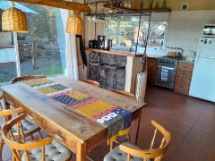 Al ingresar, living con estufa a leña, comedor, cocina tipo americana, dormitorio y baño completo.