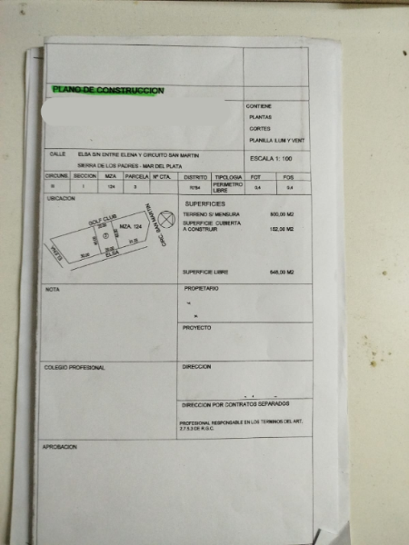 Gran lote de 800 m2, sobre la Cancha de Golf. A metros del Circuito Principal. Soleado. Cercado. Cuenta con proyecto de planos.