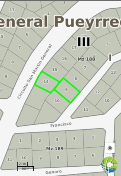 Lote 14, sobre Circuito Gral San Martín, de 605 m2. Lote 9, sobre calle Angela de 600 m2.